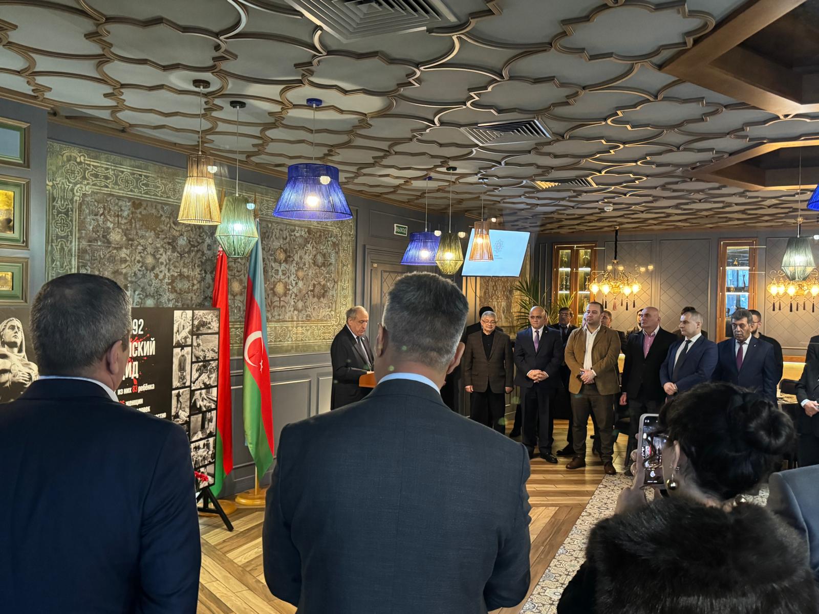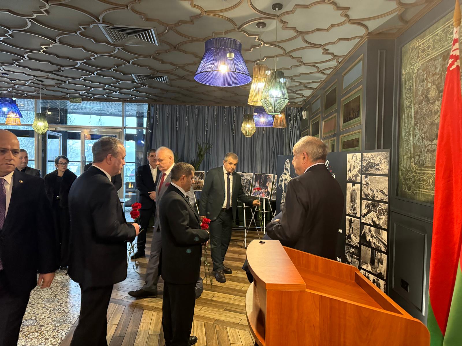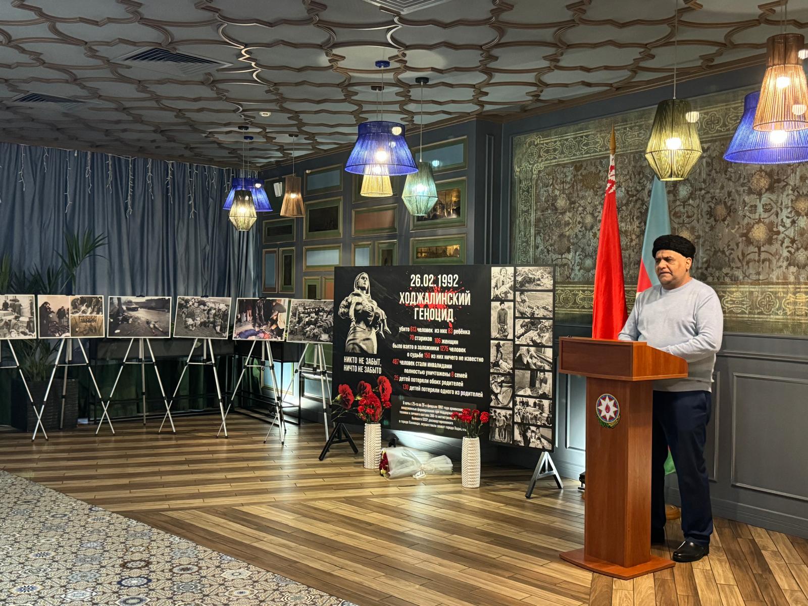 Посол Азербайджанской Республики в Республике Беларусь Магеррам Алиев, выступая, довел до сведения участников, факты о Ходжалинском геноциде и упомянул про провокационную политику, проводимой армянами в отношении Карабаха на протяжении веков. В ночь с 25 на 26 февраля 1992 года, нарушив все нормы международного права вооруженные силы Армении, нанесли тяжелый удар по мирному населению осажденного города Ходжалы.